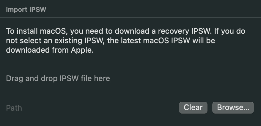 • Download the the MacOS 13 Ventura IPSW file that matches your mac (link)